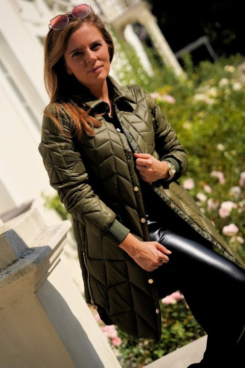 pikowany płaszcz damski